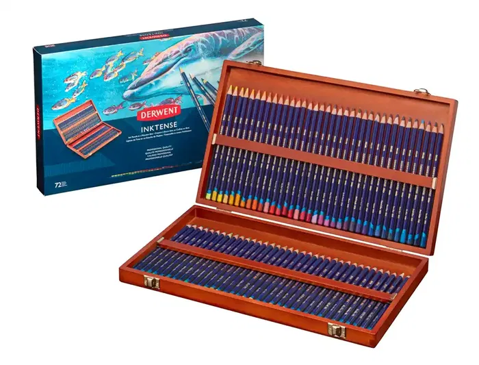 Derwent Lápices de Colores Inktense Solubles en Agua Caja de Madera 72 Unidades Colores Surtidos