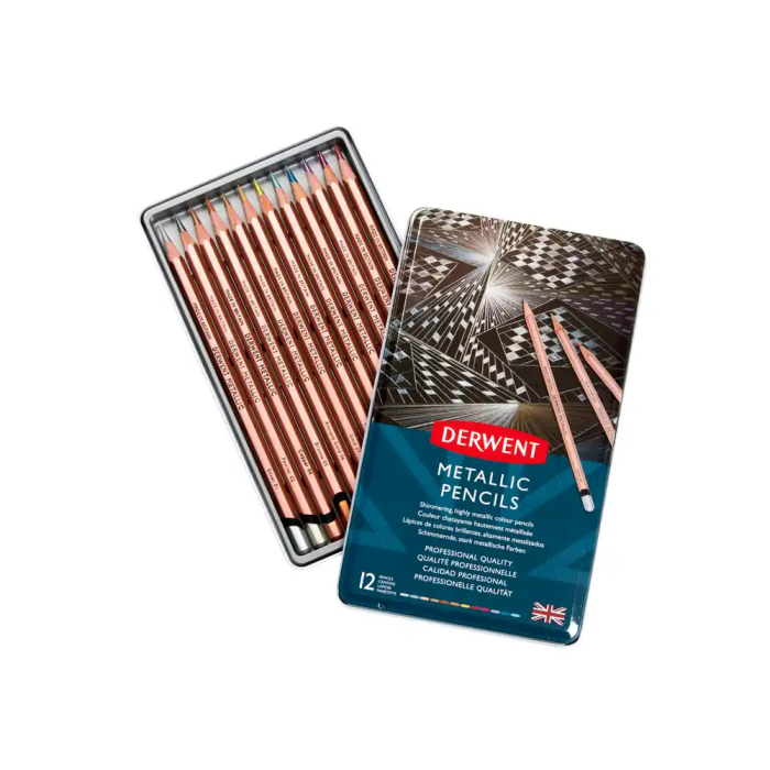 Derwent Lápices de Colores Metallic Caja Metálica 12 Unidades Colores Surtidos