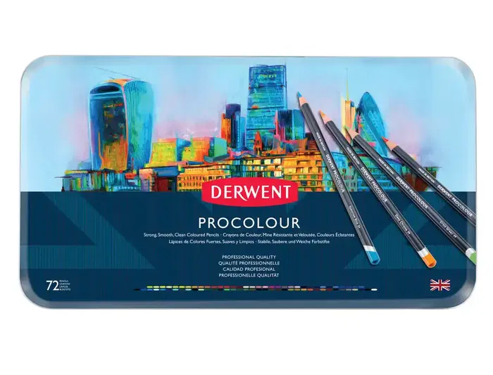 Lapices de colores derwent procolour caja metalica de 72 unidades colores surtidos