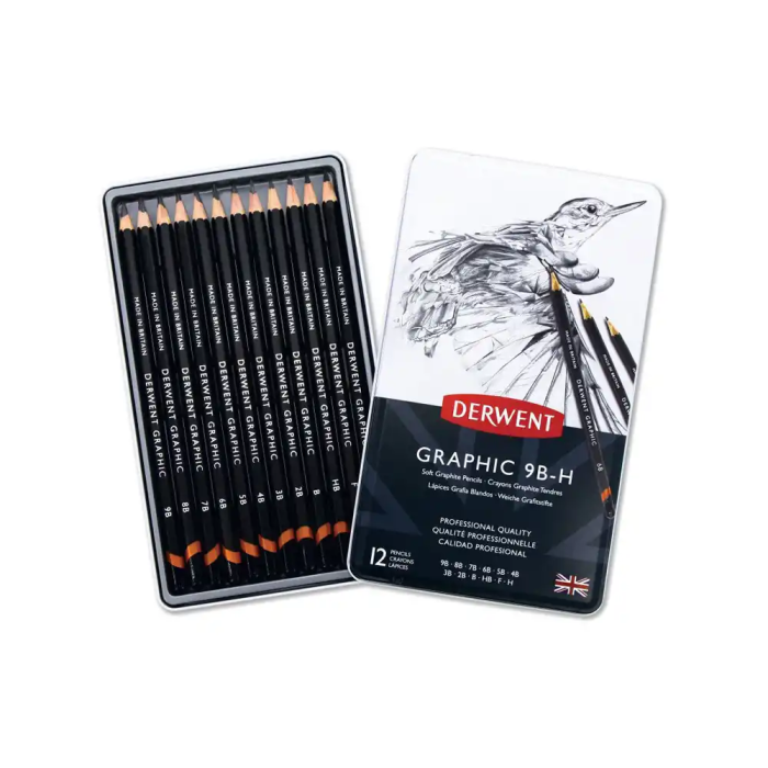 Derwent Lápices de Grafito Caja Metálica 12 Unidades Durezas Surtidas