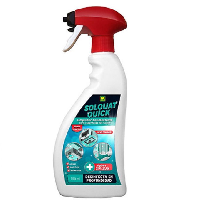 Aplicar SOLQUAT QUICK con la ayuda de pulverizador. Mojar una zona extensa, secar con cel-lulosa, o limpiar con una mopa empapada con el producto y dejar secar.