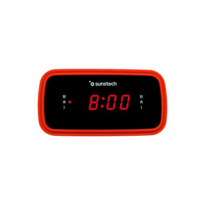 SUNSTECH Despertador Radio FRD60RD FM LED Rojo/Negro con Doble Alarma y Batería de Reserva