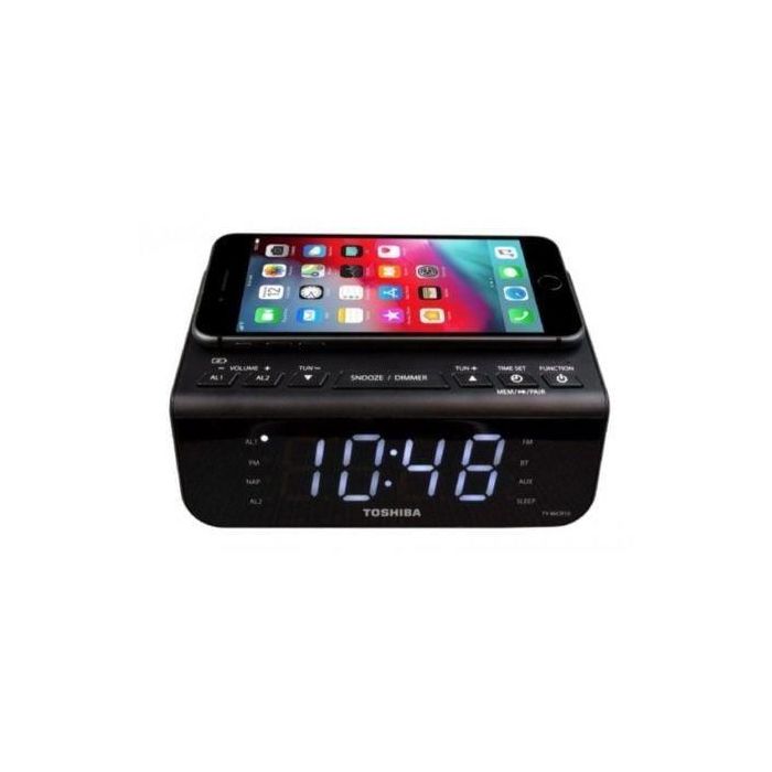 El radio reloj despertador Toshiba TY-WCR10 y Bluetooth ofrecen mucha versatilidad para la cabecera de su cama donde puede cargar su teléfono