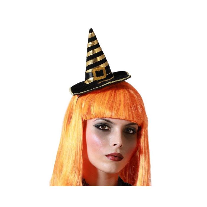Diadema Sombrero Bruja Naranja Dorado con Hebilla y Ribete Brillante para Fiestas de Disfraces y Carnaval