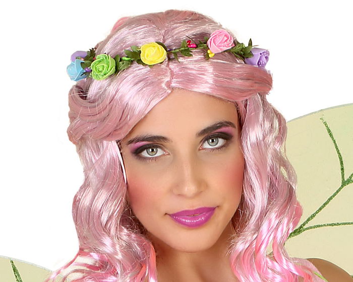 Añade un toque mágico a tu disfraz con esta hermosa diadema de flores multicolor. perfecta para personajes de hadas, ninfas o princesas, es un accesorio ideal para carnaval, eventos medievales o fiestas de fantasía. su diseño romántico te hará lucir encantadora.