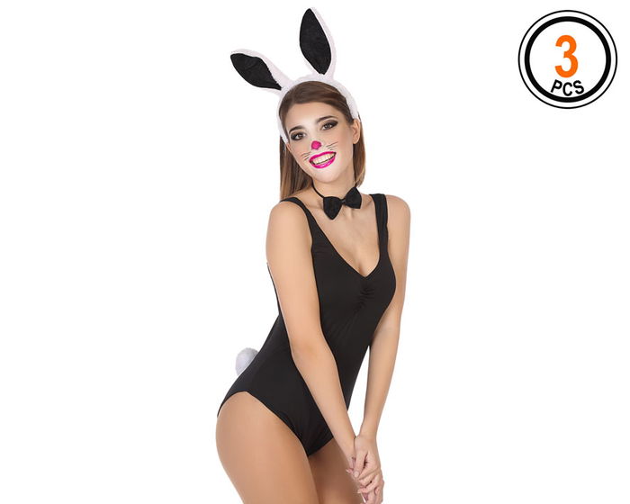 Completa tu disfraz de conejita con este coqueto kit de 3 piezas. la diadema con orejas blancas y detalles en negro aporta un toque juguetón, mientras que la pajarita y la cola de pompón blanco añaden elegancia y estilo. perfecto para fiestas de disfraces, carnaval o espectáculos de animación. ideal para un look sexy, divertido y tierno a la vez.