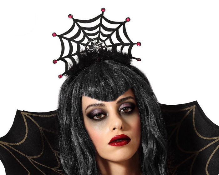Sorprende con esta diadema en forma de telaraña negra decorada con detalles rojos brillantes y una araña en el centro. perfecta para completar un disfraz de bruja, araña humana o personaje de pesadilla. añade un toque de originalidad a tu look de halloween, carnaval o sesiones fotográficas siniestras.