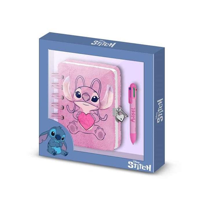 Karactermania Angel Libreta Plush + Boli Heart Set A5 con Candado y Llaves, Bolígrafo 6 Colores, 100 Hojas, Material Peluche y Papel, Rosa