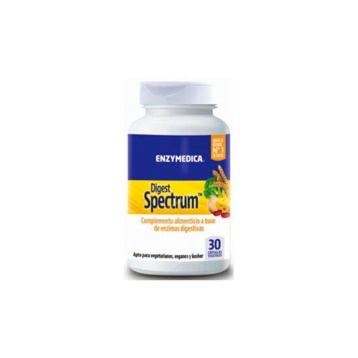 Indicaciones: Suplemento a base de una combinación única de enzimas de alta potencia. Apto para vegetarianos, veganos y Kosher. Digest Spectrum de Enzymedica está diseñado con ingredientes que pueden ser de utilidad para ayudar a mantener los niveles normales de enzimas en el sistema digestivo y a abordar las deficiencias enzimáticas específicas que pueden provocar intolerancias alimentarias, como la lactosa o el gluten. Los beneficios de Enzymedica Digest Spectrum son múltiples, como ayudar a reponer las enzimas que faltan en el sistema digestivo, para servir de apoyo en situaciones de molestias y síntomas desagradables después de comer ciertos alimentos.