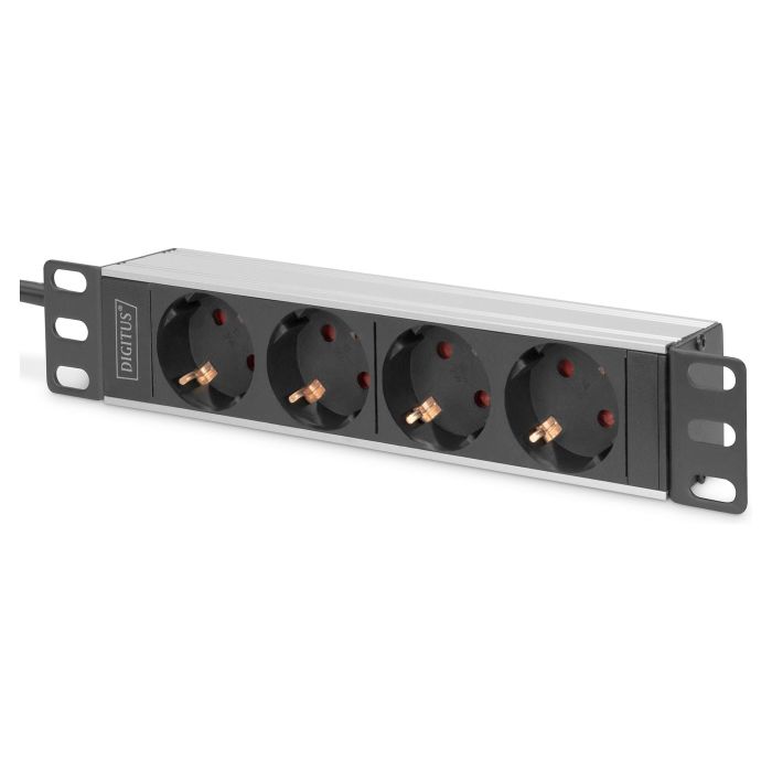 Digitus Regleta de enchufes de 10" con perfil de aluminio, 4 enchufes con contacto de puesta a tierra, Básico, 0U/1U, Aluminio, Plástico, Negro, 4 salidas AC, Tipo F