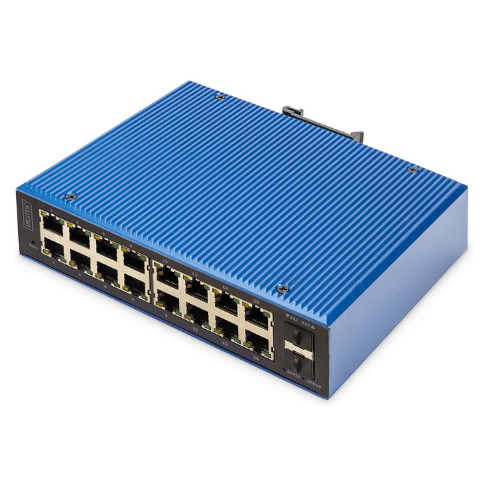 Digitus 16+2P Industrial Gigabit Ethernet Switch L2 Managed - 16 Puertos RJ-45 Gigabit + 2 SFP, Conmutador Gestionado para Montaje DIN, IP40