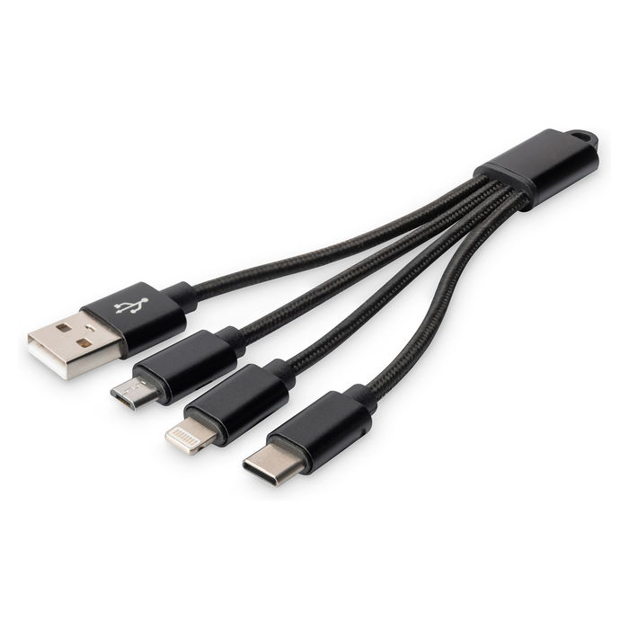 Digitus Cable de carga USB 3 en 1, 0,15 m, Negro, 0,15 m, Níquel, China, 1 pieza(s), 235 mm