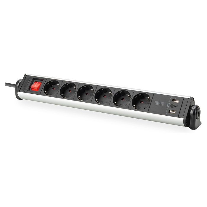 Digitus Regleta 6 Enchufes con 2 USB-A 1 USB-C y Interruptor Negro/Plata