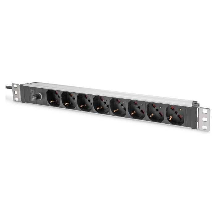 Digitus Socket strip with aluminum profile and back-up fuse, 8-way Italian output, 2 m cable IEC C14 plug, 1U, Horizontal/Vertical, Aluminio, Plástico, 8 salidas AC, Tipo L, C14 acoplador