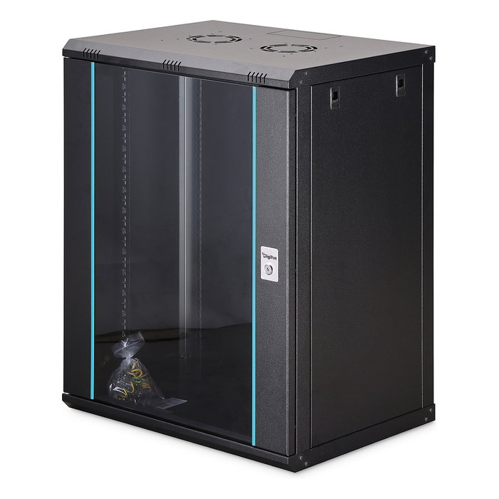 Digitus Caja mural serie Dynamic-N - 600x450 mm (ancho x fondo), sin montar, Bastidor de pared, 16U, 60 kg, Bloqueo del teclado, Rieles de rack, Gestión de cables