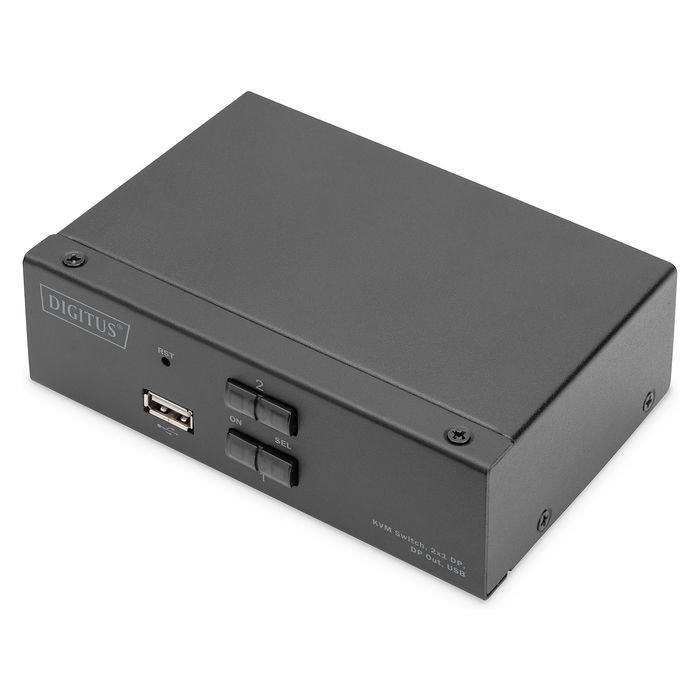 Digitus Conmutador KVM, 2x1 DP, DP Out, USB, 3840 x 2160 Pixeles, 4K Ultra HD, Negro
