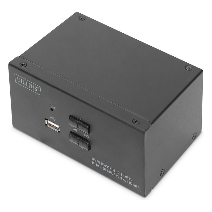 Digitus Conmutador KVM, 2 puertos, pantalla dual, 4K, HDMI®, 3840 x 2160 Pixeles, 4K Ultra HD, Negro