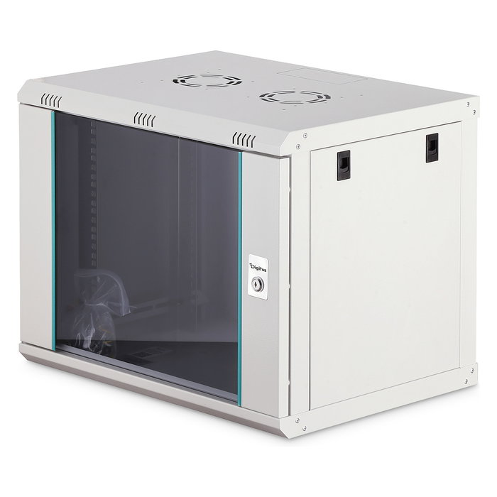 Digitus Caja mural serie Dynamic-N - 600x450 mm (ancho x fondo), sin montar, Bastidor de pared, 9U, 60 kg, Bloqueo del teclado, Rieles de rack, Gestión de cables