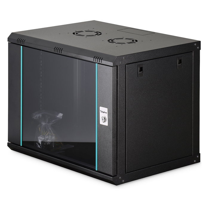 Digitus Caja mural serie Dynamic-N - 600x450 mm (ancho x fondo), sin montar, Bastidor de pared, 9U, 60 kg, Bloqueo del teclado, Rieles de rack, Gestión de cables