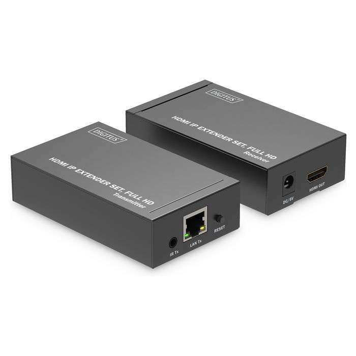 Digitus Conjunto extensor IP HDMI, Full HD, 1920 x 1080 Pixeles, Transmisor y receptor de señales AV, 120 m, Alámbrico, Negro, HDCP