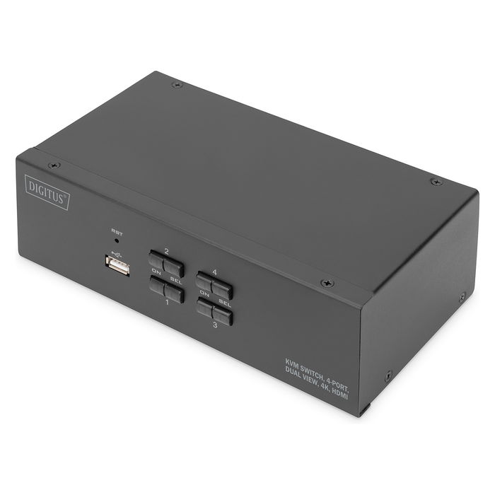 Digitus KVM-Switch 4-Port, Dual-Display 4K HDMI, Conmutador para 4 Computadoras, 2 Pantallas 4K a 60 Hz, USB 3.0, Control por Botón/Teclado (Referencia: DA-70966)