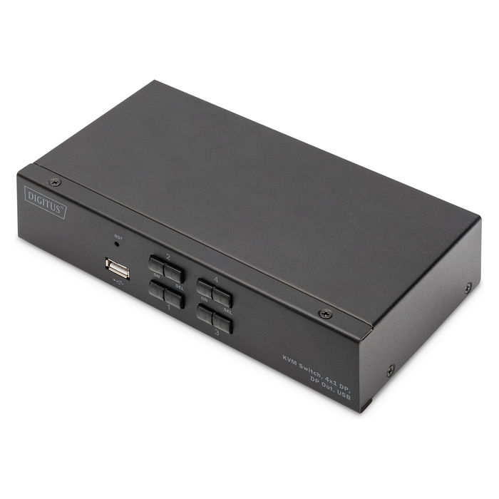 Digitus Conmutador KVM, 4x1 DP, DP Out, USB, 3840 x 2160 Pixeles, 4K Ultra HD, Negro