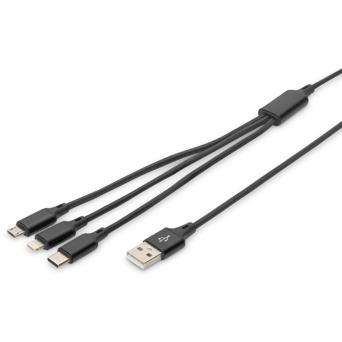 Digitus Cable de carga 3 en 1, 1 m, USB A, USB C, Negro
