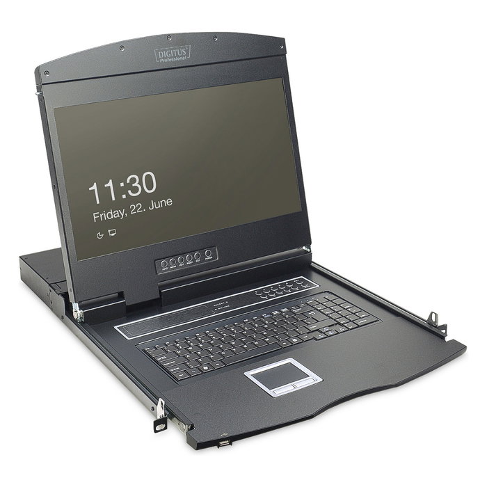 Digitus Consola modular con TFT de 19" (48,3 cm), KVM de 8 puertos y panel táctil, teclado inglés (US), 48,3 cm (19"), 1366 x 768 Pixeles, 1000:1, TFT, 16,78 millones de colores, VGA