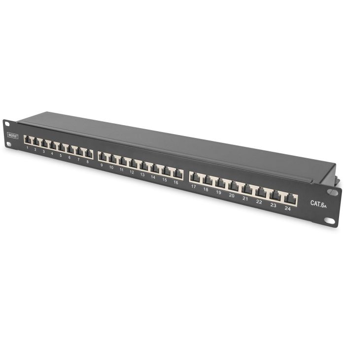Digitus CAT 6A, panel de conexión clase EA, apantallado, RJ-45, Cat6a, Negro, Acero, Montaje en bastidor, 1U