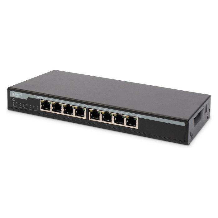 Digitus Conmutador de escritorio Gigabit de 8 puertos PoE 10/100/1000 Mbps, No administrado, Gigabit Ethernet (10/100/1000), Energía sobre Ethernet (PoE)