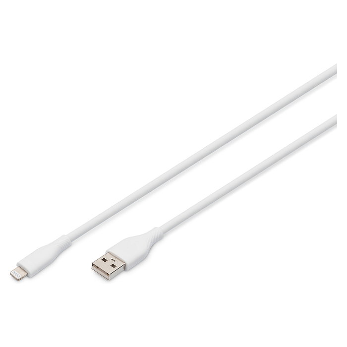 Digitus Cable de conexión Lightning de silicona, USB-A - Lightning 1m, blanco, 1 m, Lightning, USB A, Macho, Macho, Blanco