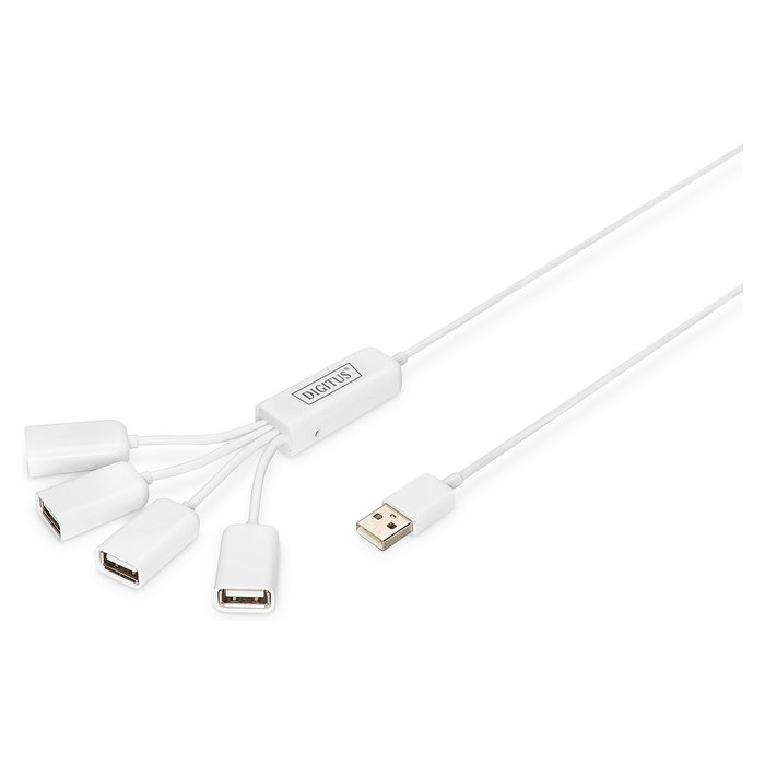 Digitus Concentrador USB Slim Spider ®, 480 Mbit/s, Blanco, 1,00 m, China, Microsoft Windows 7/Vista/XP, Mac OS 10.x, 170 mm