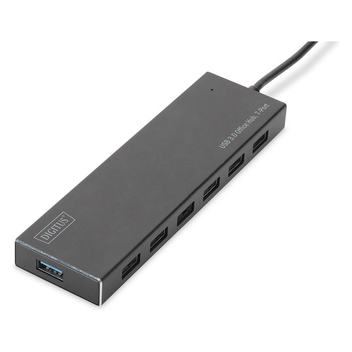 Digitus Concentrador para oficina USB 3.0, 7 puertos, USB 3.2 Gen 1 (3.1 Gen 1) Type-A, USB 3.2 Gen 1 (3.1 Gen 1) Type-A, 5000 Mbit/s, Gris, Aluminio, 1 m