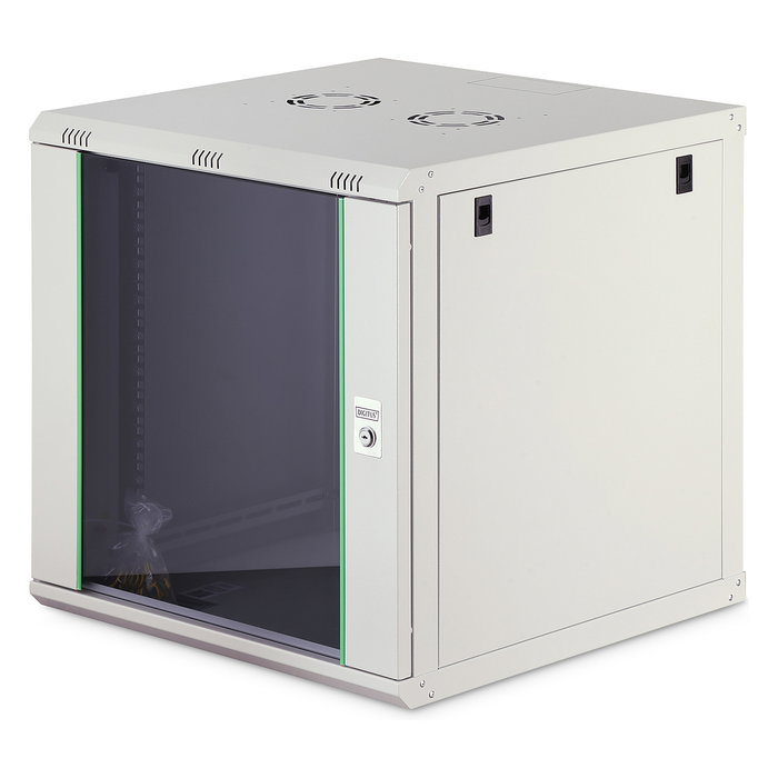 Digitus Caja mural serie Dynamic Basic - 600x600 mm (ancho x fondo), Bastidor de pared, 12U, 60 kg, Bloqueo del teclado, Gris