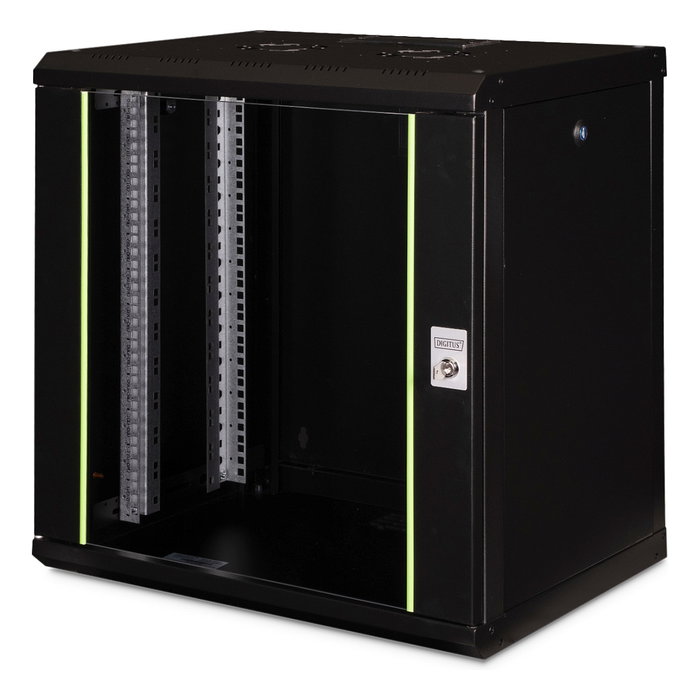 Digitus Carcasa de pared de la serie Unique - 600 x 450 mm (an. x pr.), Bastidor de pared, 12U, 100 kg, Bloqueo del teclado, Negro