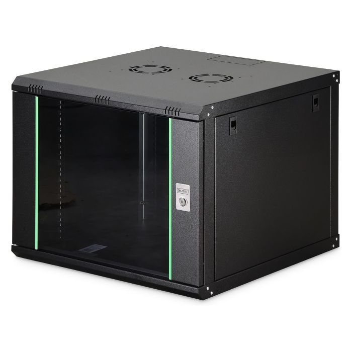 Digitus Caja mural serie Dynamic Basic - 600x600 mm (ancho x fondo), Bastidor de pared, 9U, 60 kg, Bloqueo del teclado, 26 kg, Negro
