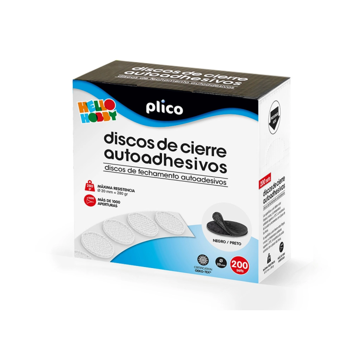 Discos Cierre Adhesivos Plico 20 Ø 200 Conjuntos Macho/Hembra Negro