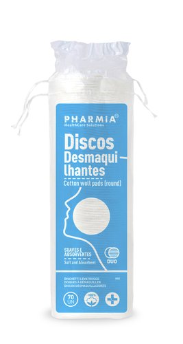 Discos desmaquillantes Pharmia de doble cara, 100% algodón. Indicado para limpiar la piel y prevenir las irritaciones, picores y alergias. Paquete de 70.