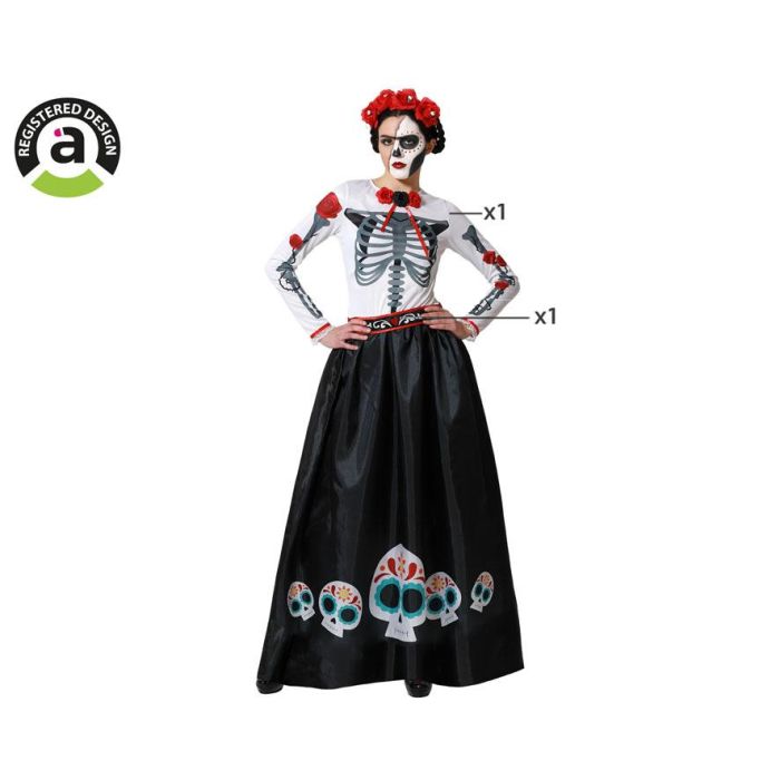 Disfraz Esqueleto Mejicano Catrina Mujer XS-S Halloween Vestido y Cinturón Multicolor