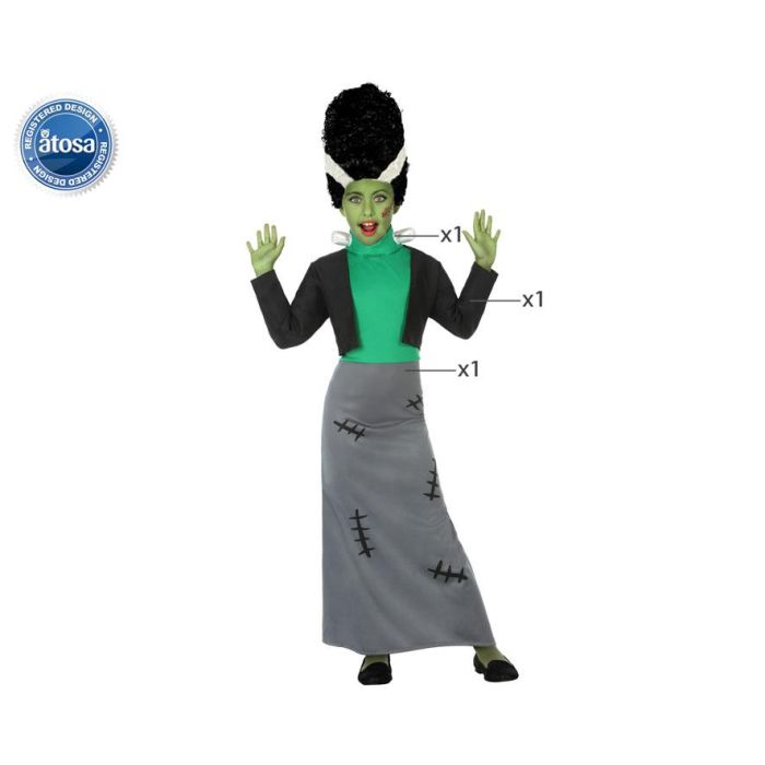 Disfraz Monstruo Infantil Frankenstein Niña Halloween 10-12 Años Chaqueta Vestido Cuello
