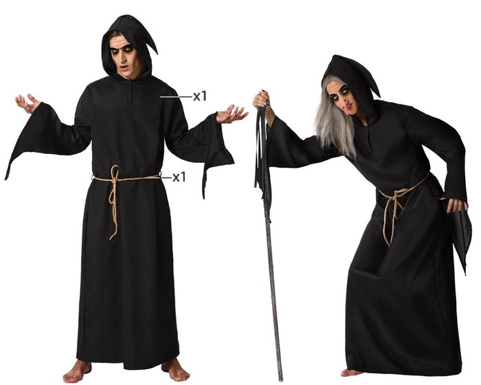 Ver todas las marcasDisfraz de Bruja Adulto Halloween XXL - Túnica Negra con Capucha y Cinturón - Poliéster Unisex