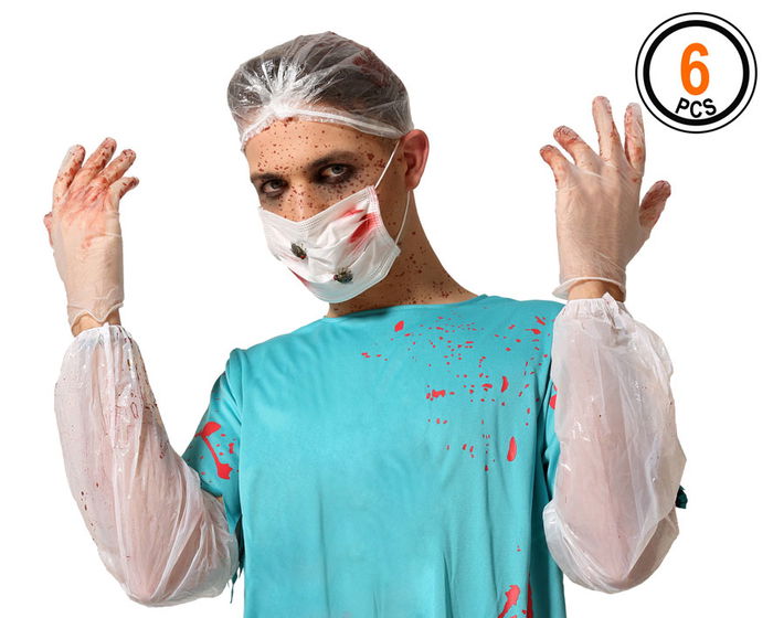 Conviértete en un escalofriante cirujano del terror con este completo set sangriento de doctor. incluye gorro, mascarilla manchada, guantes y mangas protectoras que simulan sangre para un efecto realista. perfecto para completar tu disfraz de hospital macabro en halloween, fiestas temáticas o pasacalles de terror. añade una bata ensangrentada y maquillaje para intensificar el impacto visual. palabras clave: disfraz médico sangriento, doctor zombie, accesorio hospital halloween.