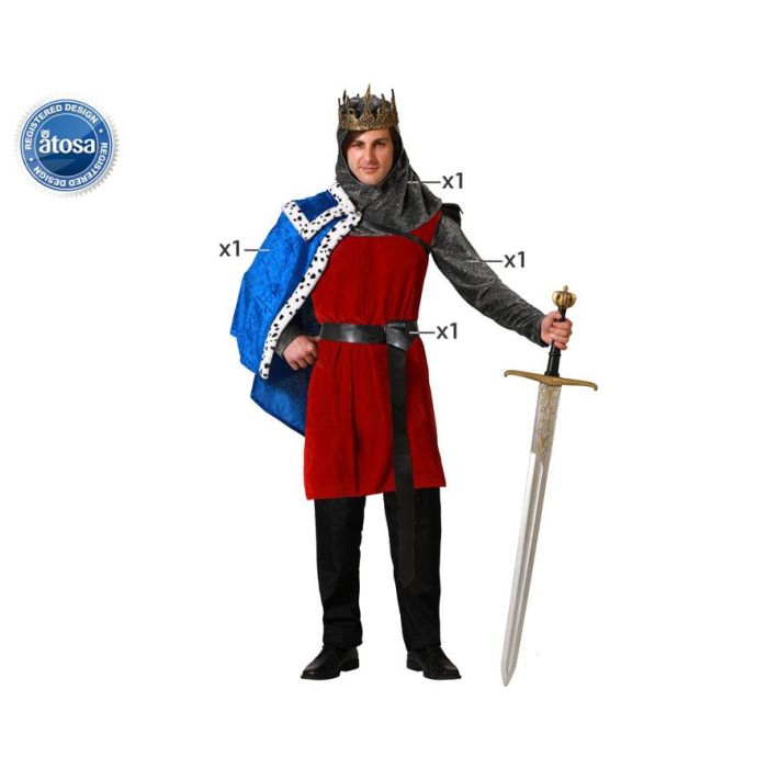 Disfraz Rey Medieval Hombre Adulto Capa Azul Túnica Cinturón Capucha Carnaval Temática Edad Media Poliéster XS-S
