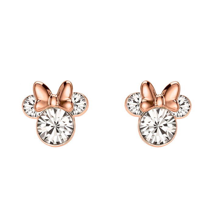 Disney Pendientes Minnie Mouse Bañados en Plata 18 ct Oro Rosa Piedras Engarzadas Oficial