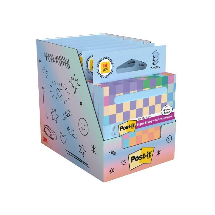 Post-It Dispensador de Cartón 90 Hojas Z-Notes Reciclado Super Sticky 76x76 Mm Azul Lavado R330-1RSSB 7100399315