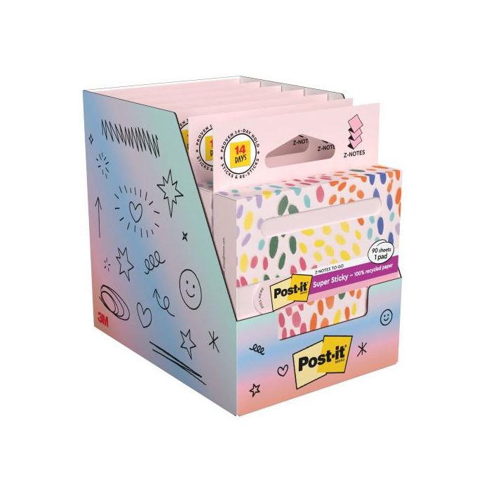 Post-it Bloc de notas adhesivas quita y pon super sticky 100% pefc 76x76 mm dispensador 90 hojas rosa