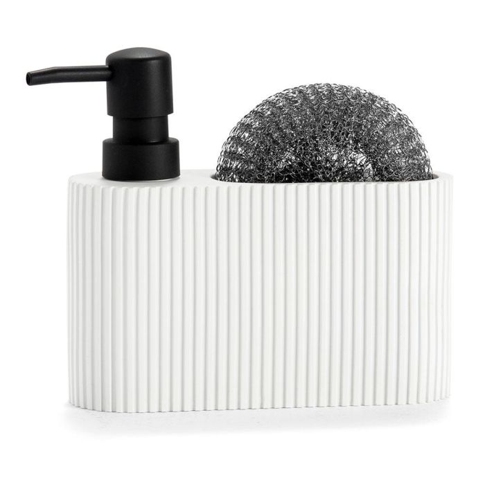 Andrea House Cc71086 Dispensador de jabón con estropajo de poliresina blanco/negro 16 x 5 x 15 cm
