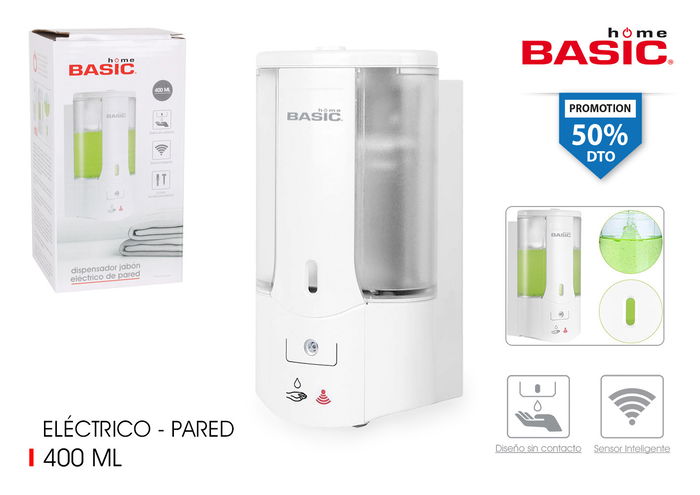 Basic Home Dispensador Jabon Electri Pared Abs 400ml 9.5x18 cm (6 Unidades)