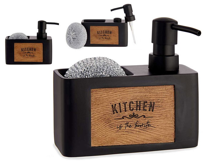 DISPENSADOR SOPORTE ESPONJA NEGRO GRABADO MADERA