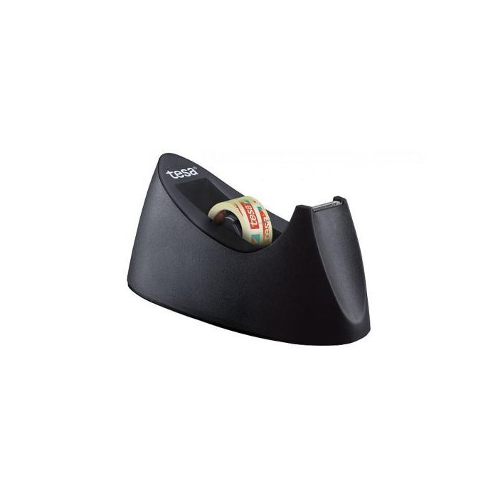 Tesa Portarrollo Sobremesa Easy Cut Curve Negro Plástico para Cinta 33 m x 19 mm + Cinta Tesafilm Transparente